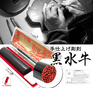 黒水牛印鑑(送料無料 10年保証) ●特徴 ツヤのある黒が美しい水牛の角は貴重な材質で、その希少性と高級感から実印や銀行印に人気の印材です。 ●お取扱方法について ※より長くお使いいただく為に、朱肉を付ける時は、あまり強く付け