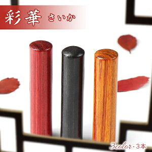 彩華3本セット印鑑・3種類選べる【送料無料】【10年保証】 彩華は地球環境を重視して作られたエコ印材です。 木目が非常に綺麗な印鑑で人気を集めています。 ●印鑑サイズ 直径10.5mm×長さ60mm(認印) 直径12.0mm×長さ60...