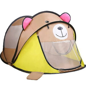 ※画像中の小物(ボール等)は商品に含まれません。 かわいいアニマルデザインの屋内・屋外両対応ミニテントです。 面倒な組み立ては一切不要です。折りたたまれたテントを収納袋から取り出し広げれば一瞬で完成。本当に簡単であっという