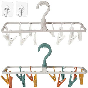 AMUU ハンガー 折りたたみ式 角ハンガー 24ピンチ 洗濯 物干し ハンガー 多機能 旅行用 回転式 携帯ハンガー 洗濯物ハンガー 省スペース 乾燥ホルダー 防風 室内外両用 小物収納(カラー) グレー...