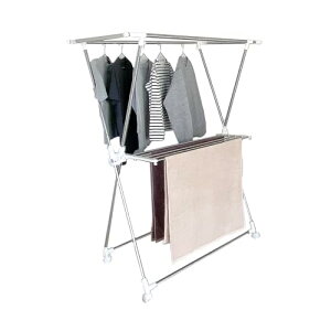 たっぷり干せます:使用時は、20枚以上の衣類を干せます。衣類が多い日でも安心してお使いいただけます。また、キルトを干すのにも使える長さです。 抜群の安定性:丈夫な鉄素材で作られており、積み重ねても非常に安定しています。た