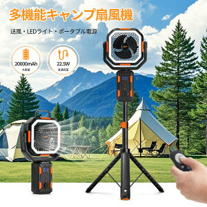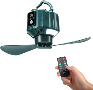 吊り下げ扇風機 キャンプ扇風機 最大25時間使用 三段階風量調整 LEDライト付の天井扇風機 リモコン扇風機 タイマー機能付 アウトドアテント扇風機 キャンプ/リビング