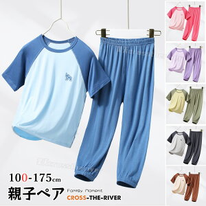 親子ルームウェア 2点セット パジャマ カラフル 親子 ペアルック 半袖 トップス パンツ 親子お揃い 親子コーデ ママと娘 ハハ 娘 姉妹お揃い 家族で