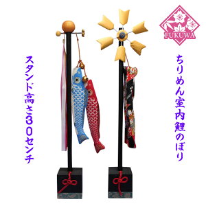 商品説明 室内専用の吊るし鯉のぼりです。 仕様 ■台サイズ(約):間口9cm×奥行12cm×高さ48cm ■鯉サイズ(約):黒鯉17cm/赤鯉15cm/青鯉13cm ※名前は入れられません