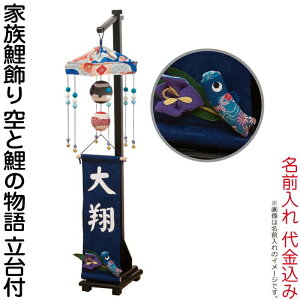 メーカー希望小売価格はメーカーカタログに基づいて掲載していますサイズ:巾20×高さ76(cm)(全体サイズ)(社)日本人形協会認定 優良店家族鯉飾り 空と鯉の物語 名前入れ 代金込み 立台付商品番号:m-t24【2026年度新作五月人...