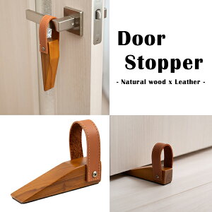 天然木×本革のドアストッパー 温かみのある天然木を使用したシンプルなドアストッパー。使わない時はドアノブに掛けて収納することができ、必要な時にすぐ取り出せます。本革を使用している為、経年変化も楽しむことができるのもポイントです。コンパ...