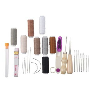 1.材料:ステンレス?、木およびプラスチックの作られて、?い??のためにそれらを使用できます。 2.パッケージに含まれるもの:8個のミシン糸、2個の千枚通し、5個の革のステッチのミシン針、2個の湾曲した針、9個の大きな目の鈍い針、1個のは