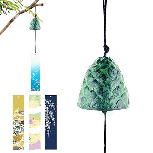 防水短冊3枚付き 鋳鉄製 涼しい 清涼 癒し音 夏の風物詩 ウィンドチャイム 贈り物 プレゼント 室内用 ベランダ 窓辺 和風 釣鐘型 多種類から選べる (松ぼっくり)ブランド色松ぼっくりモデル50DT0121CO...