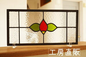 ステンドグラス パネル 住宅用 つぼみ 2種のクリア レッド×グリーン 40cm×20cmの解説。愛知県刈谷市の自社ステンド工房で職人がひとつひとつ丁寧に手作りする日本製ステンドグラス〔Made in Japan/ハンドメイド〕。