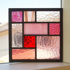 ステンドグラス パネル 住宅用 9つのスクエア ピンク×パープル 18cm×18cmの解説 ・愛知県刈谷市の自社ステンド工房で職人がひとつひとつ丁寧に手作りする日本製ステンドグラス〔Made in Japan/ハンドメイド〕 ・9つの...
