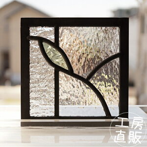 ステンドグラス パネル 住宅用 小さな葉っぱ ライン 淡いグリーン 2種のクリアの背景 12cm×12cmの解説 ・愛知県刈谷市の自社ステンド工房で職人がひとつひとつ丁寧に手作りする日本製ステンドグラス〔Made in Japan/ハ...
