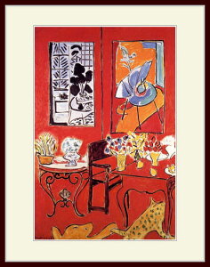 【西洋画・複製画】大きな赤い室内 アンリ・マティス 61×49.5cm F8サイズ 樹脂製フレーム世界の有名美術館がレプリカを制作するために採用している最先端ジグレ版画技法で特製新絹本画布に表現、最終仕上げは手彩による補正が加えられ、リ