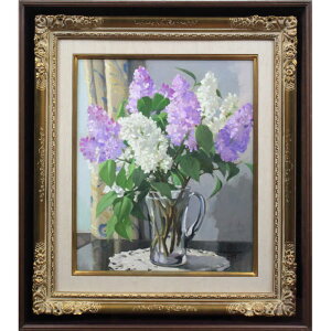 清明な色彩で生き生きと描かれたライラックの花1977年制作ライラックは札幌市のシンボルで、街路樹や公園に数多く植えられている樹木です。室内に生けた満開のライラックの枝を、清明な色彩と堅実な写実技法で描いた清々しい作品。技法