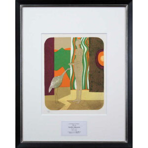 室内空間に女性を描くというテーマを大切にする作家作品La femme et l'oiseau限定800部画寸:27×22cm技法:リトグラフ額のサイズ:高さ55cm×幅44cm×奥行き2.0cm作品の状態:良好ですアンドレ・ミノー(A...
