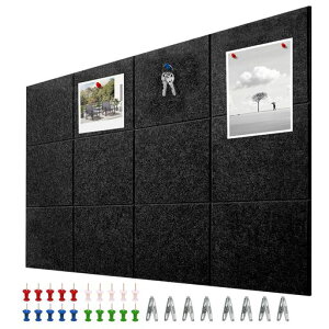 パッケージの内容:12ブロック11.8x11.8フェルトコルクボード。各ブロックサイズは30x30cm/11.8x11.8、厚さは0.35です。含む安全で取り外し可能な96枚の粘着シートと50本の画鋲、壁に耐久性と利便性を提供するソリ...