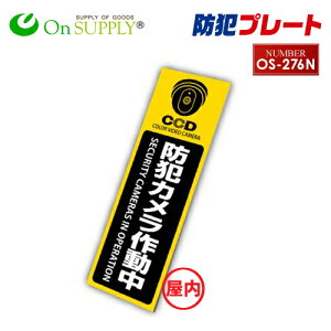 防犯カメラ作動中!! 防犯プレート「OS-276N」は、「防犯カメラ作動中」と大きく記載のある柔らかく割れにくい耐久性に優れた塩ビプレートの横タイプ室内用防犯プレートです。低コスト&高パフォーマンスで扱いやすいから手軽に防犯