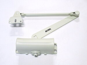 ミワロック社製(MIWA)室内用ドアチェック、ドアクローザー。 アイボリー色、パラレル取付け(ドアを押す手前にドアクローザーが付くタイプ)、ストップ付、1番タイプ(室内のフラッシュドア用)。<b...