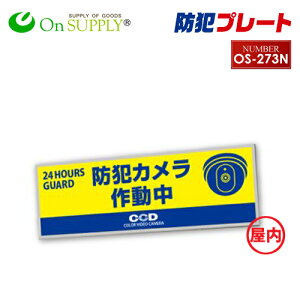 防犯カメラ作動中!! 防犯ステッカー「OS-273N」は、「防犯カメラ作動中」と大きく記載のある柔らかく割れにくい耐久性に優れた塩ビプレートの横タイプ室内用防犯プレートです。低コスト&高パフォーマンスで扱いやすいから手軽に防