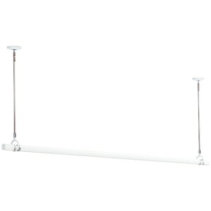 天井に本体を取付け、ワンタッチでポールを装着するだけのスマートな室内物干しです。使わない時はポールを外してすっきり。2本使ってリングに竿を通せば、たくさんの洗濯物を掛けられます。