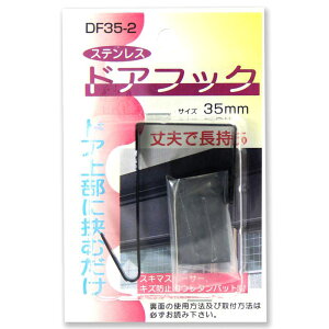 ドア上部に挟むだけ、丈夫で長持ち(スキマスペーサー、キズ防止用ウレタンパット付き)。ドア用引掛けフック【サイズ】サイズ(mm):35【材質】ステンレス(SUS430)、2B。