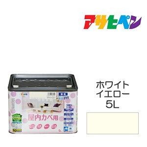 カベ紙に塗れる安心・安全な塗料 アサヒペン NEW水性インテリアカラー 屋内カベ用 5L カラー: 白、アイボリー、ホワイトピンク、ホワイトイエロー、ホワイトグリーン、ホワイトブルー、ミルキーホワイト、バニラホワイト、ライトベージ