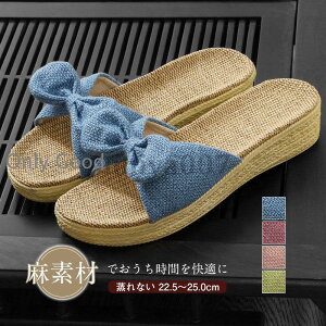 スリッパ ルームシューズ レディース サンダル ヒール リネン 麻