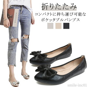 ・コンパクトに持ち運び可能なポケッタブルパンプス・リボンが可愛い折り畳みできる携帯シューズ!・コンパクトに持ち運べるポケッタブル仕様。・歩きやすいフラットデザイン・アウトソールはしっかりしたゴム底で滑りにくくなってい