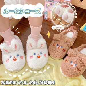 ルームシューズ メンズ レディース スリッパ 室内 カップル ペアルック ベアー ウサギ かわいい もこもこ カカト付き 自宅用 あったか 冬スリッパ 室内靴
