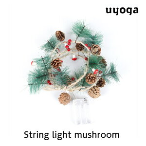 きのこや松ぼっくりがついたストリングライト ウォームホワイトの灯りで幻想的なムードを楽しめます **ストリングライトとは** 蔦状に複数のLED電球が付いた装飾用ライトのことです。 LEDなので熱くなりすぎず、扱いやすいので家庭で