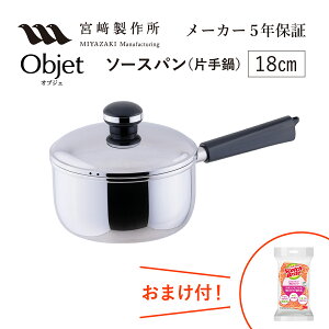 サイズ:18cm◆商品名:宮崎製作所 オブジェ 片手鍋 18cm ソースパン 日本製 5年保 証 IH対応 軽量 OJ-4 シルバー熱の伝わりが良く、保温性に優れた全面三層鋼を採用電磁調理器にも使え、...
