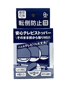 テレビ持ち上げ移動不要で前方から簡単に設置 強力面ファスナー付きベルトで固定 接着材付きフック:約40×40mm 面ファスナー部:約25×340mm 重量:約80g 使用環境温度 0℃〜40℃ 耐震度 震度6強