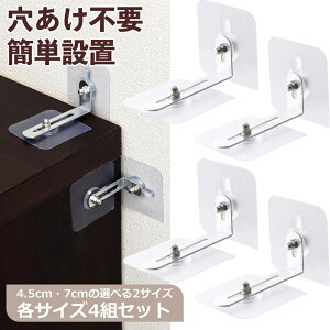 地震対策や、事故防止に。 家具を固定できるシールと金具の4個セットです。 シールを張ってネジを締めるだけの簡単取付! 貼り付け位置は微調整が可能です。 穴あけの必要がないため、壁や家具を傷つけることなく固定することができま