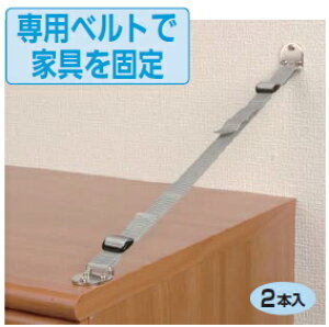 専用ベルトで家具を固定 ●材質:金具 /スチール、ベルト/ポリプロピレン ●ねじ付3.9×20mm12本 ●ベルト長さ約70cmまで取付可 ●ベルト破断強度:260kg