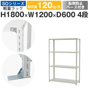 商品詳細商品サイズ(mm)高さ1800×幅1200×奥行600※呼称サイズのため実際の詳細サイズとは異なります段数4段自重35.64kg耐荷重1段あたり120kg(最大全体で600kg)形式単体形式カラーホワイトグレー(白)【メラミン...