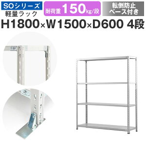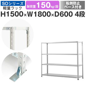 商品詳細商品サイズ(mm)高さ1800×幅1500×奥行600※呼称サイズのため実際の詳細サイズとは異なります段数4段自重44.24kg耐荷重1段あたり150kg(最大全体で800kg)形式単体形式カラーホワイトグレー(白)【メラミン...