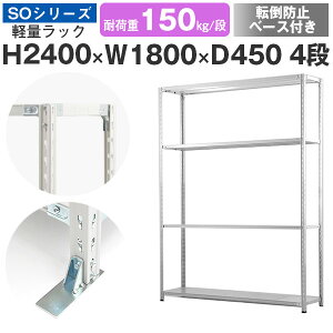 商品詳細商品サイズ(mm)高さ2400×幅1800×奥行450※呼称サイズのため実際の詳細サイズとは異なります段数4段自重47.08kg耐荷重1段あたり150kg(最大全体で800kg)形式単体形式カラーホワイトグレー(白)【メラミン...