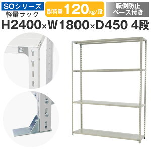 商品詳細商品サイズ(mm)高さ2400×幅1800×奥行450※呼称サイズのため実際の詳細サイズとは異なります段数4段自重44.84kg耐荷重1段あたり120kg(最大全体で600kg)形式単体形式カラーホワイトグレー(白)【メラミン...