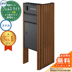 サイドスクリーン付きタイプ たて格子タイプ 本体:形材色 サイドスクリーン:木調色 照明内臓 【S型】宅配ボックス:ミドル メール便や宅配便に対応し機能と意匠性をアップさせたフレム