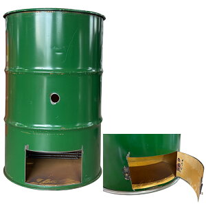 ドラム缶を利用した焼却炉です。上がオープンなため、木材など投げ込み易い構造です。取り外せるフタが付きます。容量:200。