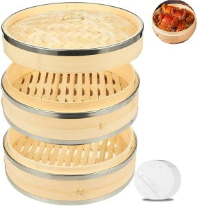 【商品コード】:y557446 【材質】:竹 【サイズ】:18CM、21CM、24CM 【様々な蒸し料理に最適】肉まんやシュウマイなどの中華料理や蒸し野菜などの様々な料理に使える竹セイロの蓋1個と本体2個のセットです。野菜・お肉・お魚...