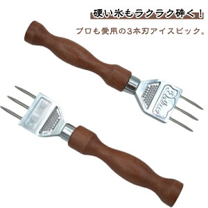 硬い氷もラクラク砕く!プロも愛用の3本刃アイスピック。先端は鋭い3本刃仕様で、力を分散しながら氷にしっかり刺さり、大きなブロック氷も簡単に割れます。刃は丈夫なステンレス製で、耐久性が高く、耐酸化性能に優れています。滑り