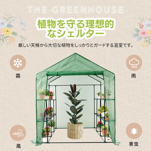 温室 ビニールハウス 家庭用 保温 観葉植物 園芸 室棚 大型 栽培 花 野菜 植物 防雨 防寒 風対策 UV防護 収納庫 多機能 簡易 家庭菜園 菜園用 園芸用 ベランダ
