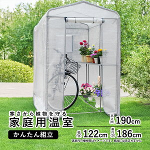ガーデン温室商品詳細 □ 商品名:家庭用温室 かんたん組立式 ガーデンハウス □ 温室サイズ:幅122cm×奥行186cm×高さ190cm □ 工具不要パイプを差し込むだけで手間いらず、寒さから植物を守ります...