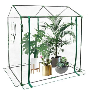 【悪天候から植物を守る安心温室】寒さや雨風から植物を守る、観葉植物の冬越しはもちろん、野菜作りにも役立つ家庭用温室です。高品質なPE素材を使用しており、優れた耐腐食性、耐久性、耐熱性を誇ります。老朽化しにくく、長期間の