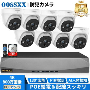 防犯カメラ POE 有線 屋外 800万画素 監視カメラ 1〜8台選択可 音声録画 LED威嚇ライト スマホ対応 IP66 遠隔操作対応 屋外設置に最適 ─ PoE給電対応 LANケーブル1本で映像+電源を同時に供給。 48V給電