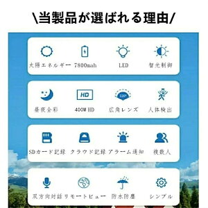 IPカメラ パンチルト機能 PIR人体検知センサー 双方向通話 IP66防水防塵 【お勧めポイントと紹介します】 1.ソーラー充電対応の防犯カメラ 1.配線不要のソーラー充電タ...