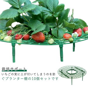 いちごの実に土が付いてしまうのを防ぐプランター棚の10個セットです。地上の果実をサポートし、イチゴを腐敗から守ることができます。茎の誘引が手軽にでき、植物を絞め付けずにキープできます。プラスチック製で簡単に組立てができ