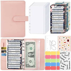 予算バインダー PUレザー ポケット12個付き ラベル付き便利セット 家計管理 お金管理 家計簿 書類・伝票・名刺・メモ紙入れ ルーズリーフバインダー システム手帳 (ピンク) 【便利な大容量セット】PU製バインダー+12枚...