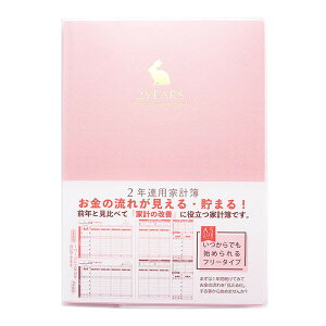 2年連用家計簿 A5 うさぎ ピンク みんなの文具 日付フリー 半透明カバー付 収支管理 シンプル かわいい。シンプルなデザインに彩りをプラスした「みんなの文具」シリーズ。