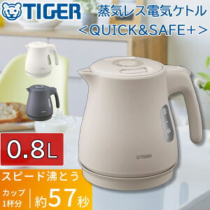 ※製品の詳細についてはメーカーサイトにて改めてご確認ください タイガー TIGER 蒸気レス電気ケトル QUICK&SAFE+ 0.8L PCV-A080 充実の安全設計。 置き場所にも困らない蒸気レス電気ケトル。 【数量限定】 ●ス...